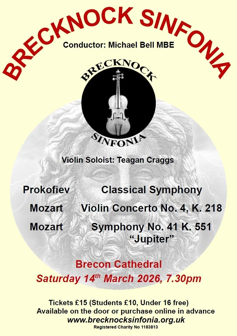 Brecknock Sinfonia Saturday 14 March 2026 19:30 21:30 Brecon Cathedral Cathedral Close Brecon, Wales, LD3 9DP United Kingdom (map) Google Calendar ICS Book in advance